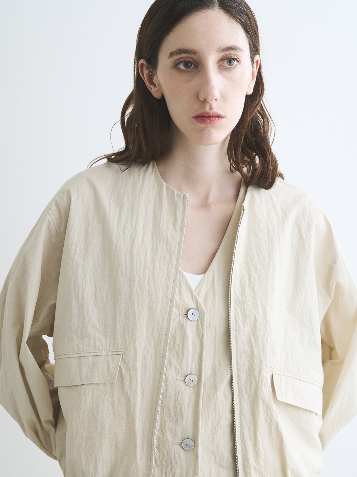 自然なシワ感と表情のある風合い、洗いざらしのようなラフな着心地。ハリと軽さを併せ持ち、着るほどに肌になじんでいきます。