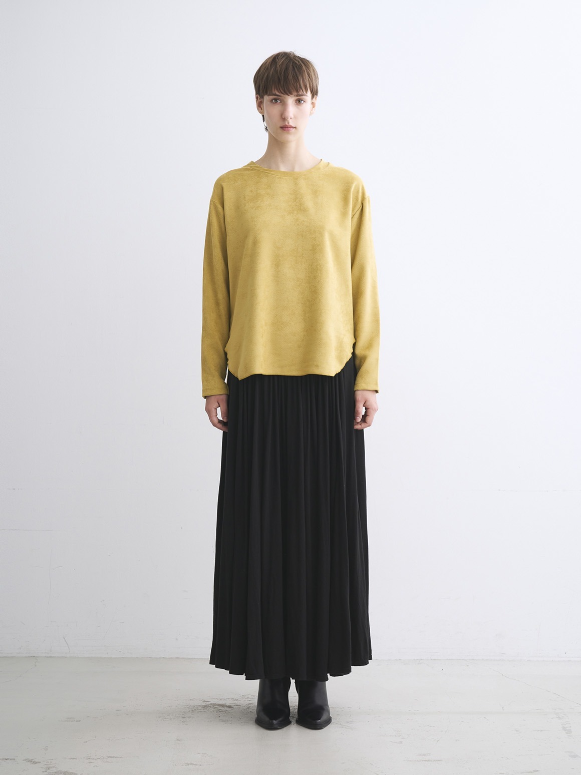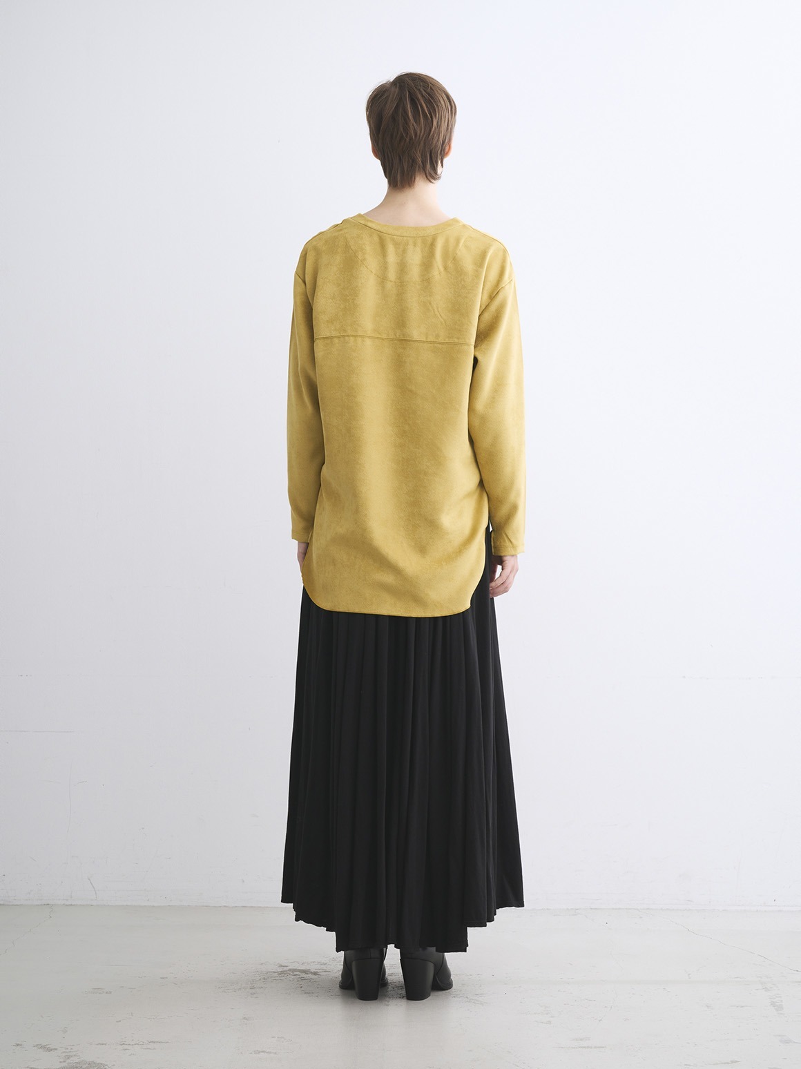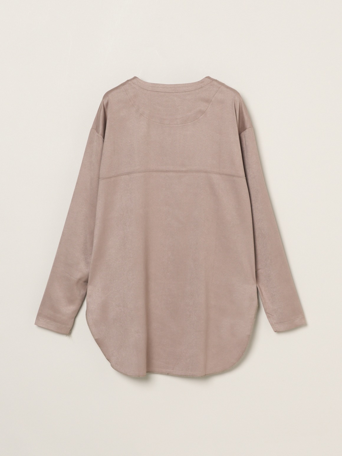 スウェード調の起毛加工を施した主役カットソー。ヒップが隠れる長め丈ですっきりとしたIラインが完成します。ナチュラルなツヤ感も特徴。チュニックライクな長さがあるためトレンドのスキニーパンツと合わせてもバランス良く着こなせます。