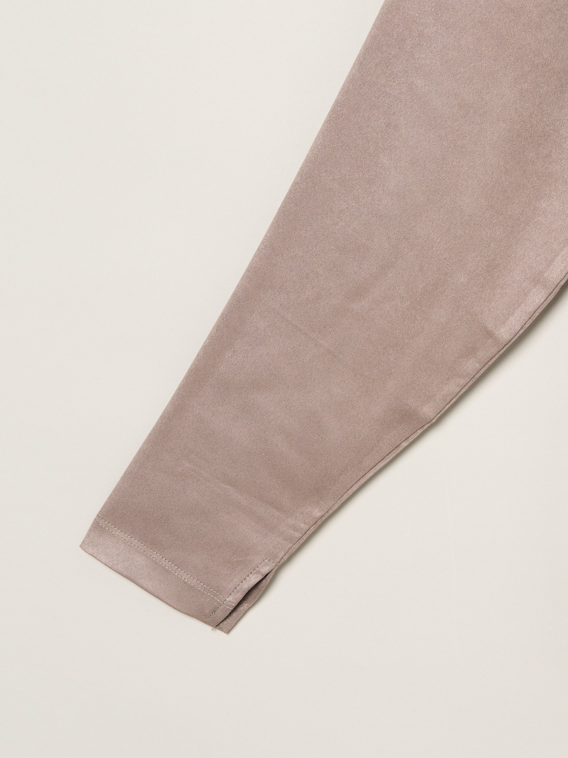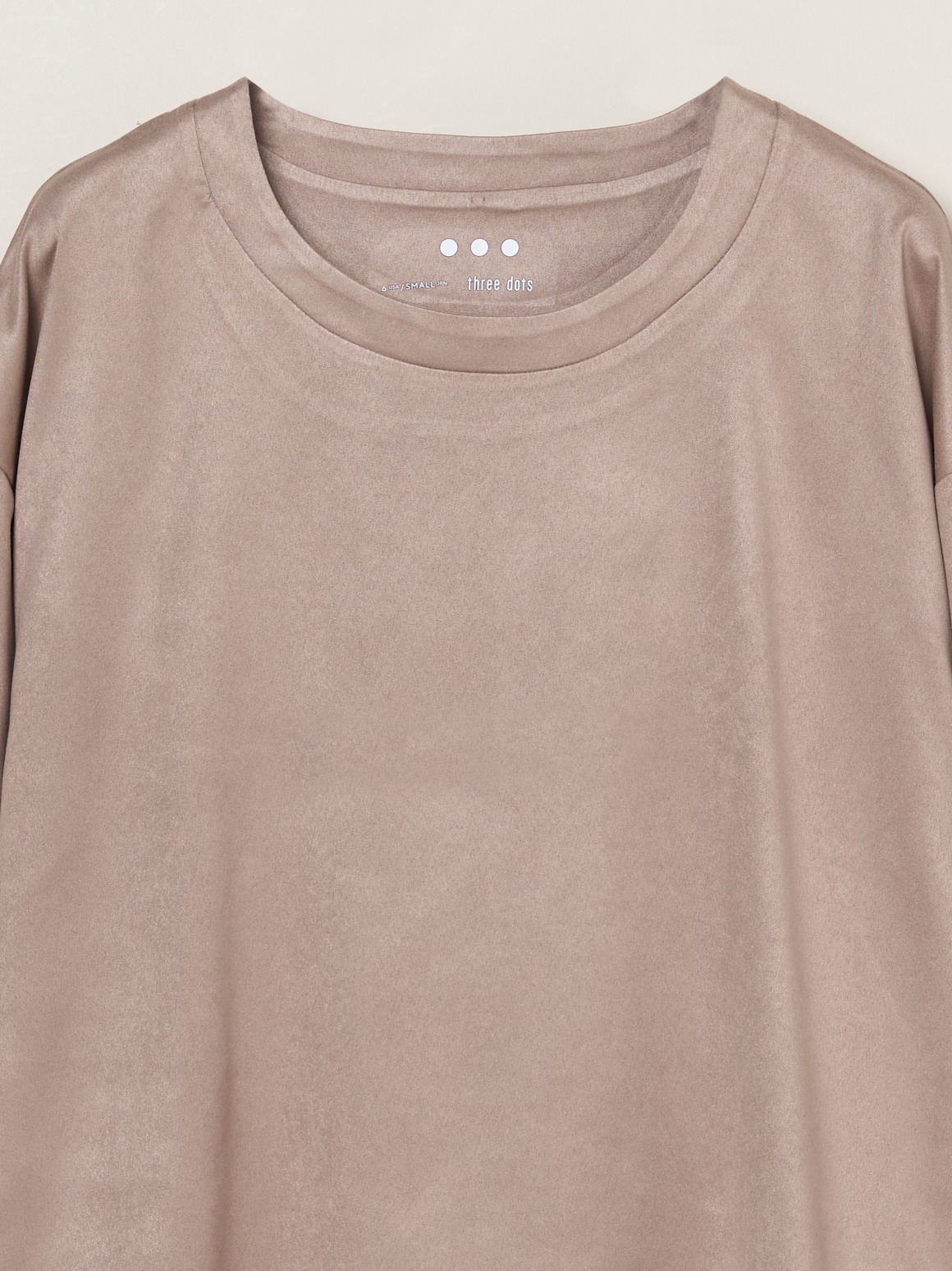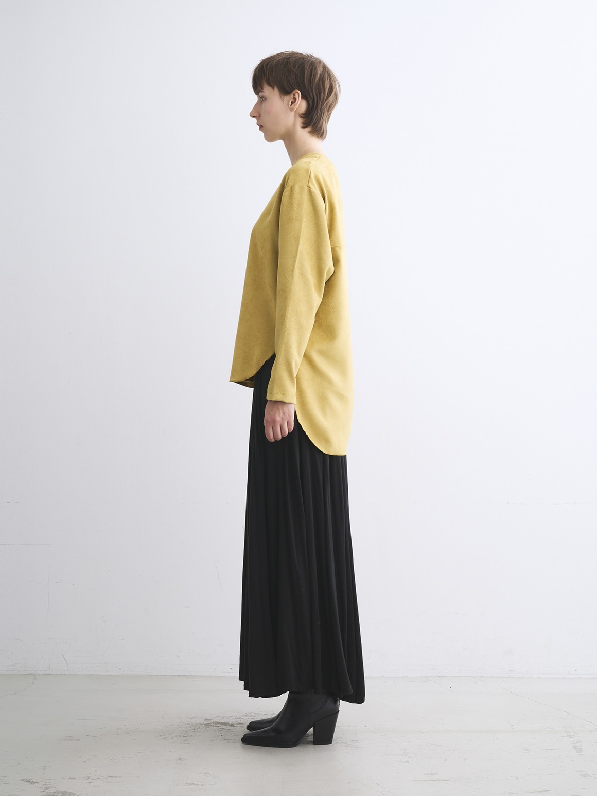 スウェード調の起毛加工を施した主役カットソー。ヒップが隠れる長め丈ですっきりとしたIラインが完成します。ナチュラルなツヤ感も特徴。チュニックライクな長さがあるためトレンドのスキニーパンツと合わせてもバランス良く着こなせます。