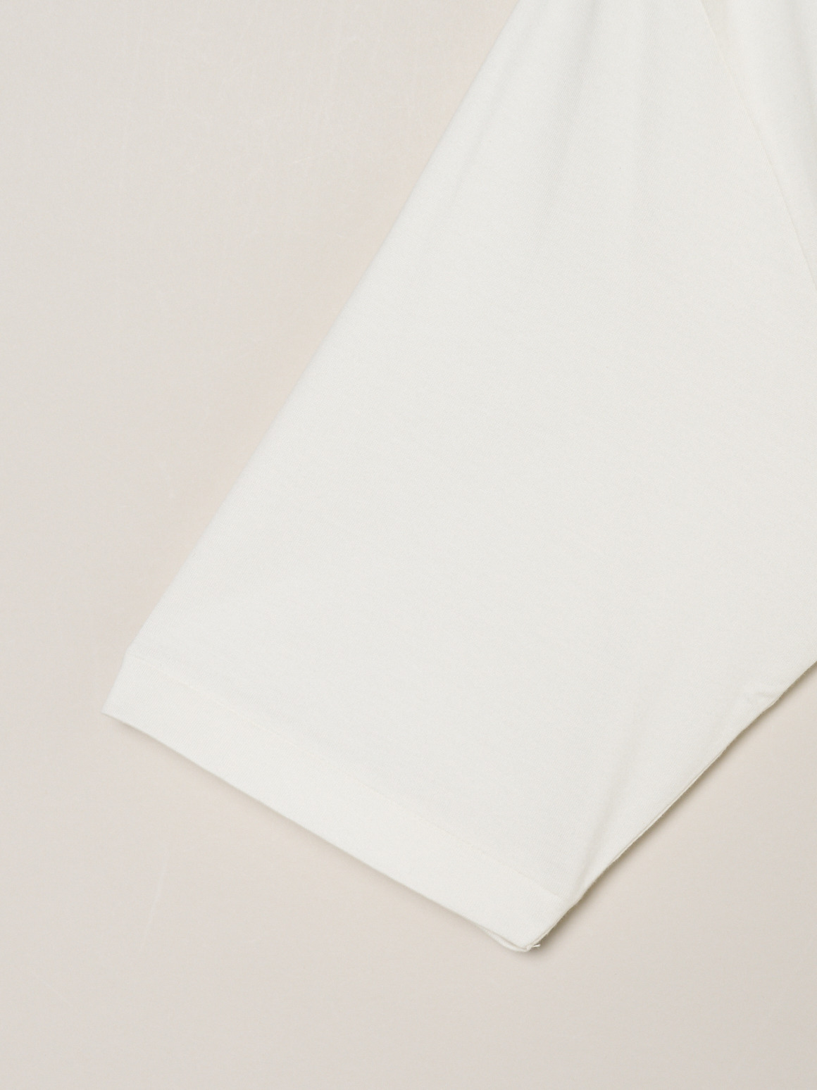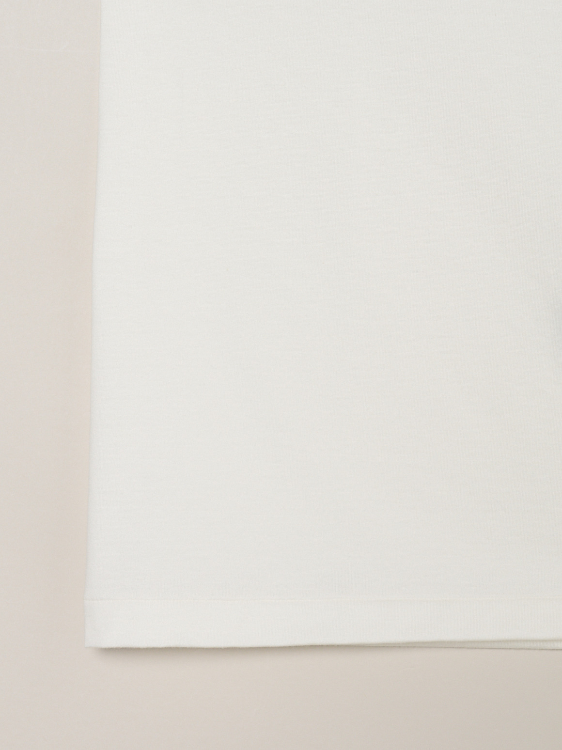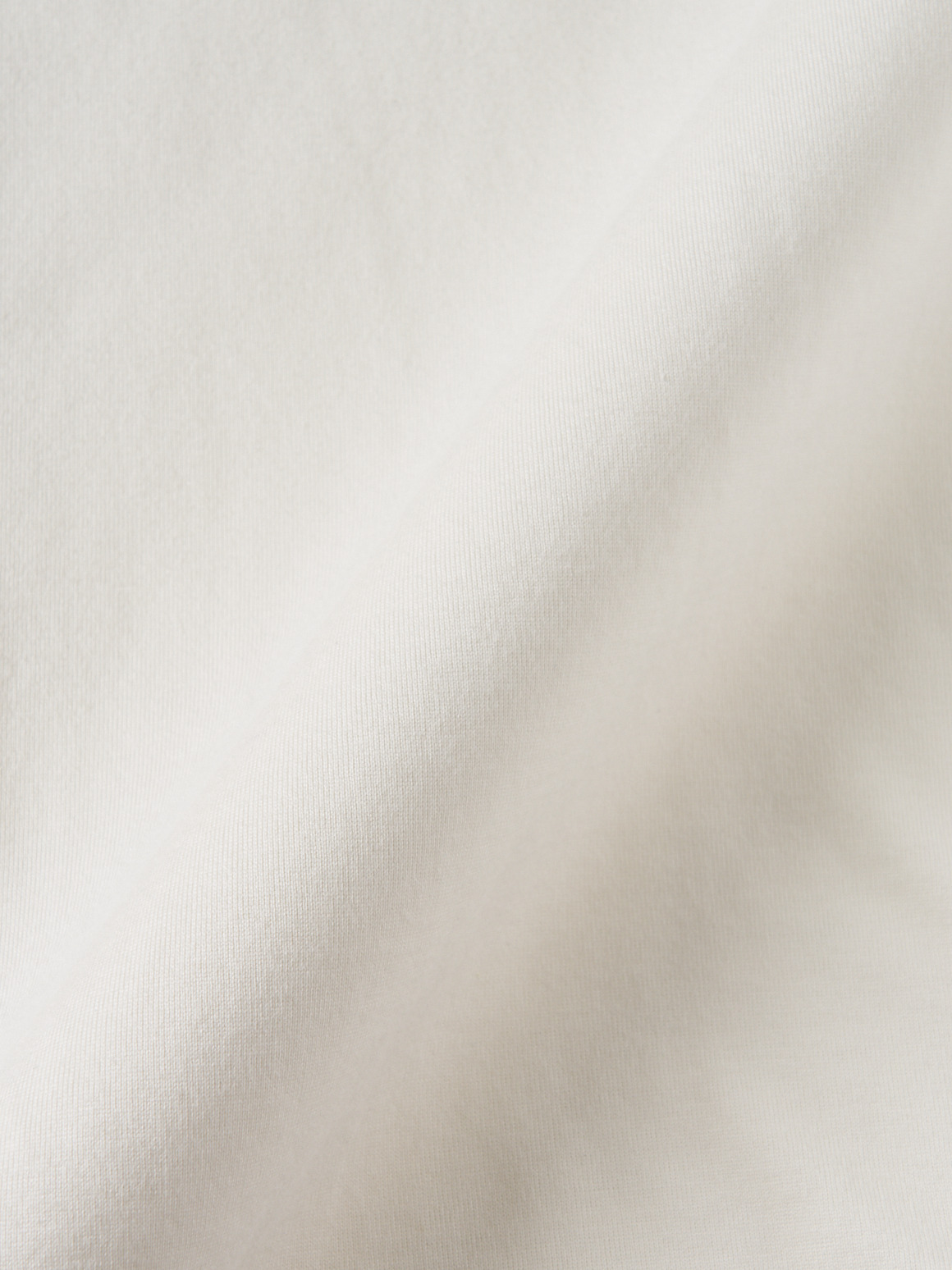 丁寧に編み上げた度詰めの天竺生地にシルケット加工を施し、なめらかで程よい光沢感のある表面が特徴です。
