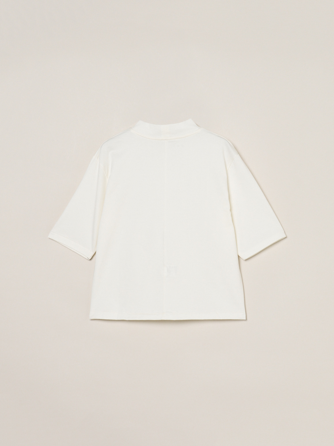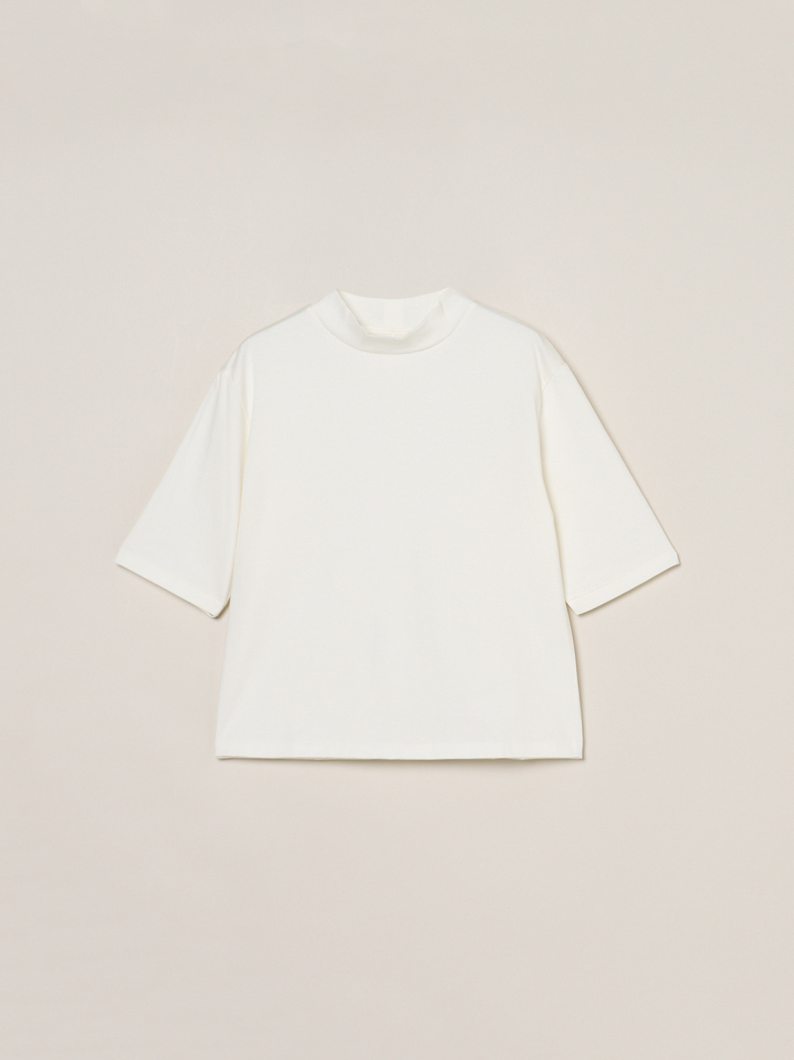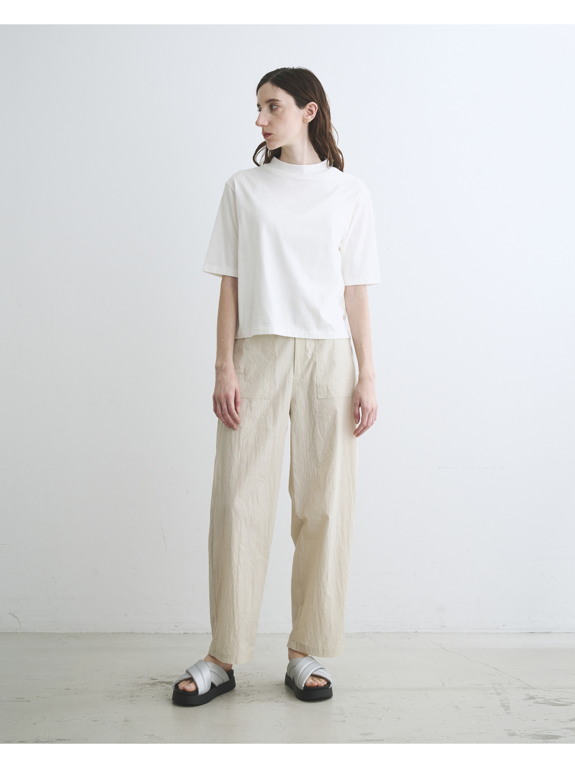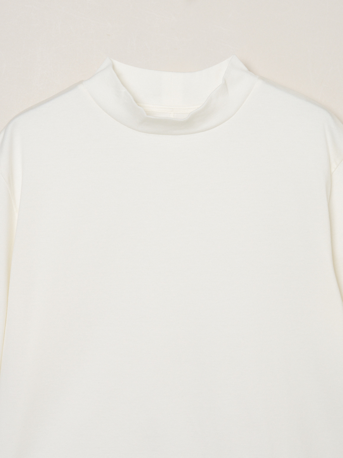 丁寧に編み上げた度詰めの天竺生地にシルケット加工を施し、なめらかで程よい光沢感のある表面が特徴です。