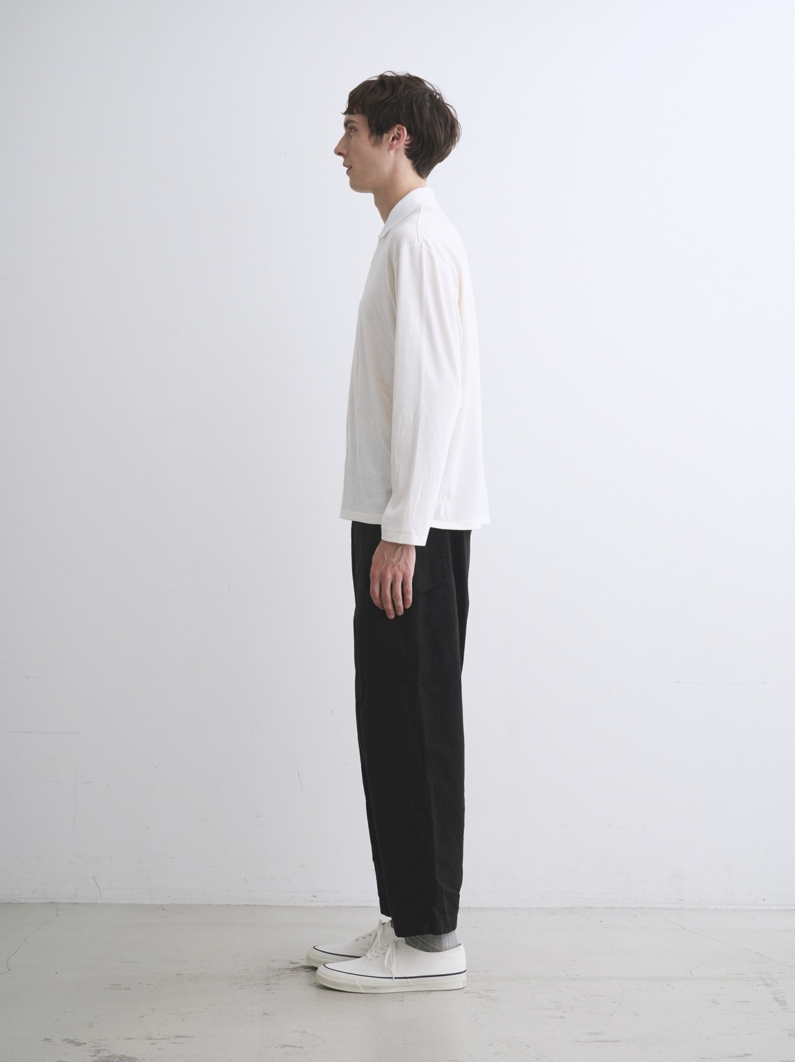 甘撚りの双糸で編み立てることで、ふんわりとした膨らみと、キックバック性が生まれ、シルエットをきれいに保ちつつ、独特なタッチ感を楽しめます。ご家庭で洗えるイージーケア仕様も嬉しいポイント。