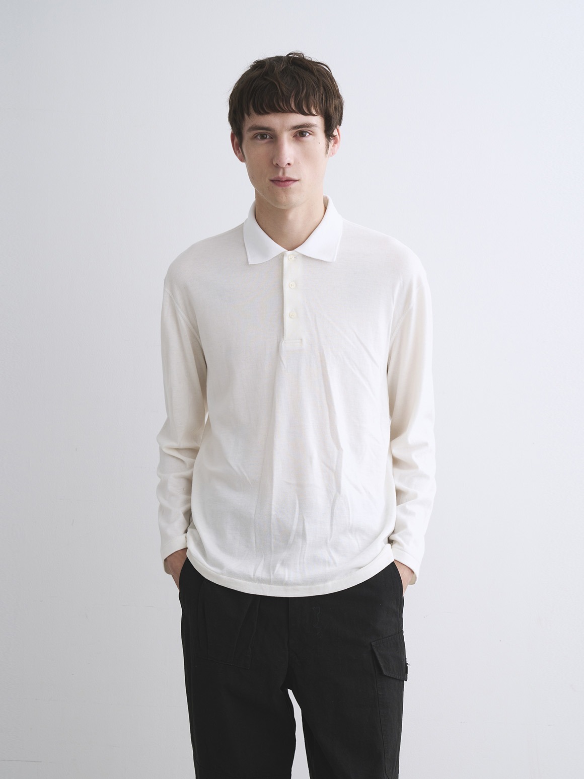 スーピマコットンとウールのブレンド糸を使用した、シルクの様なつやとしなやかな風合いが特徴のポロシャツ。