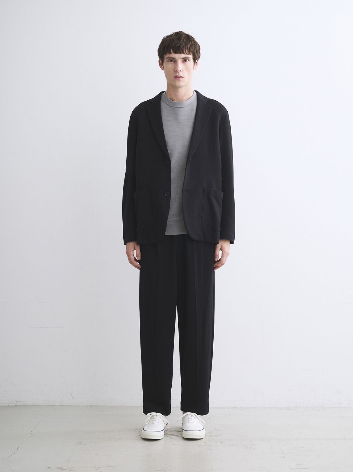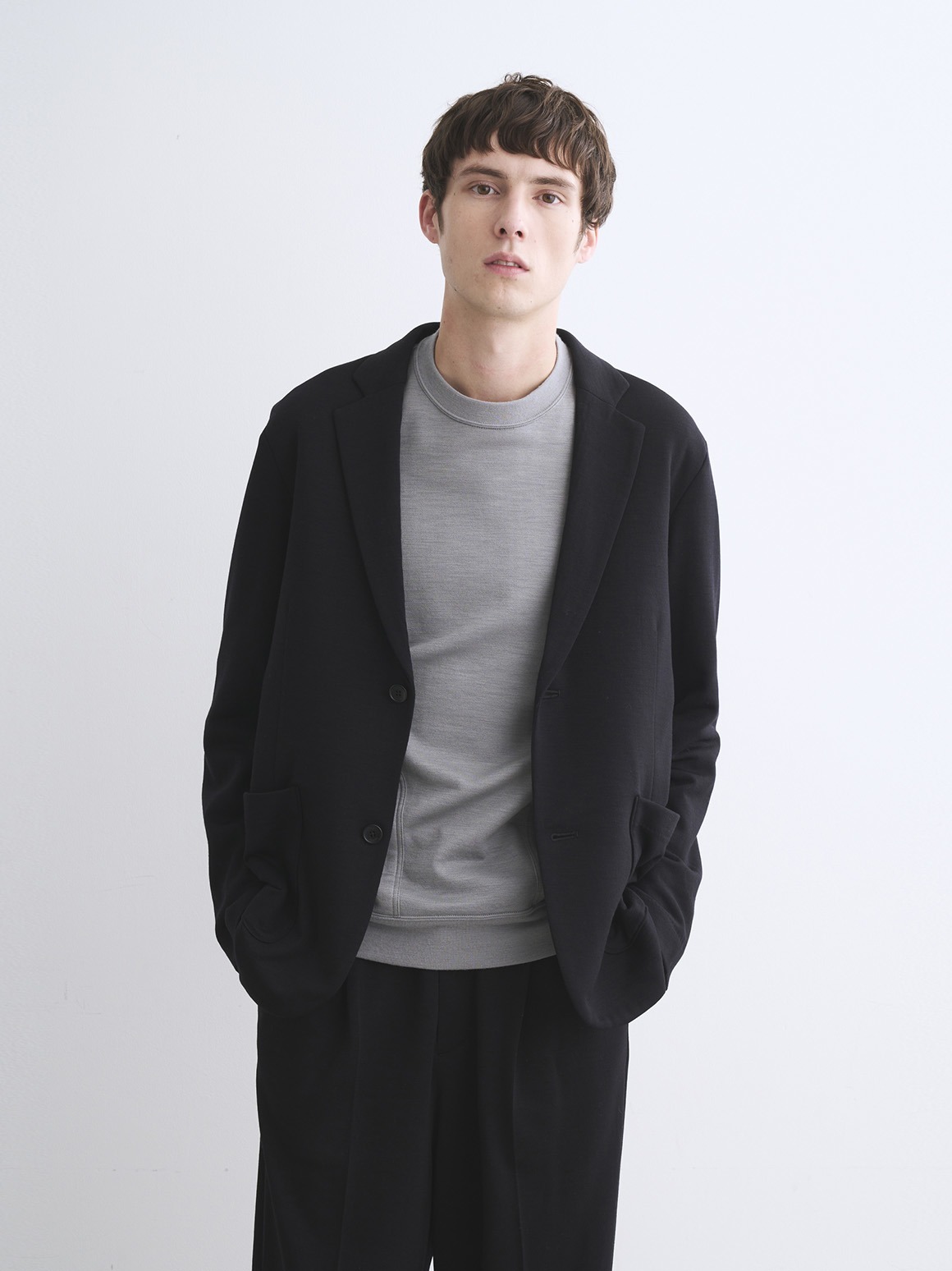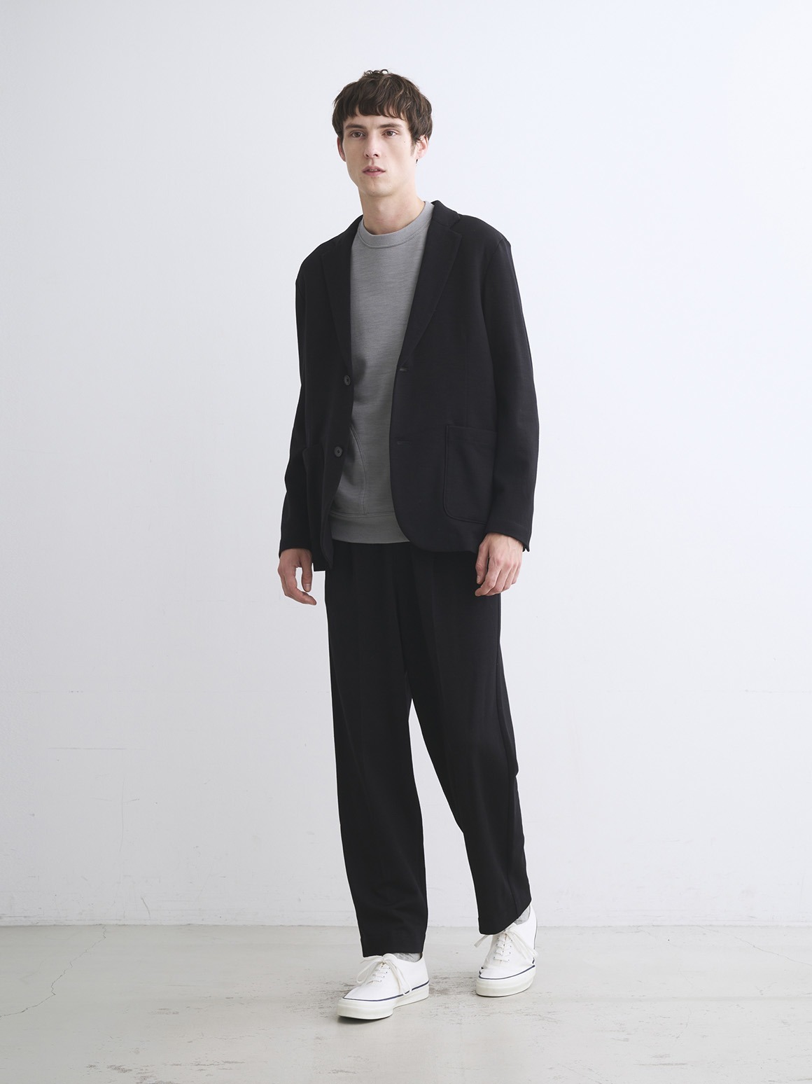 同素材でスウェット、パンツの展開もあり、セットアップではビジネスシーンにも活躍します。