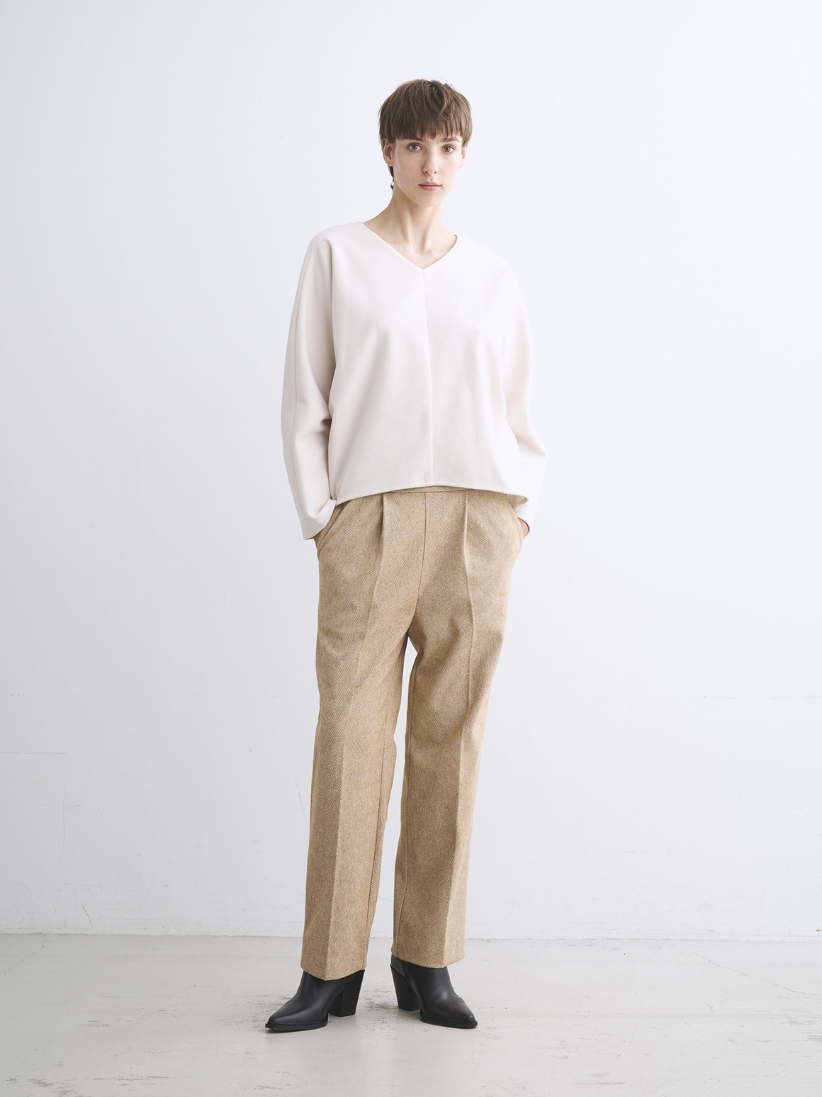 キレイ目のコーディネートにも合わせやすく、オンオフ活躍しますが一番の特徴はシワになりづらい点。手洗いができるためお手入れも簡単です。