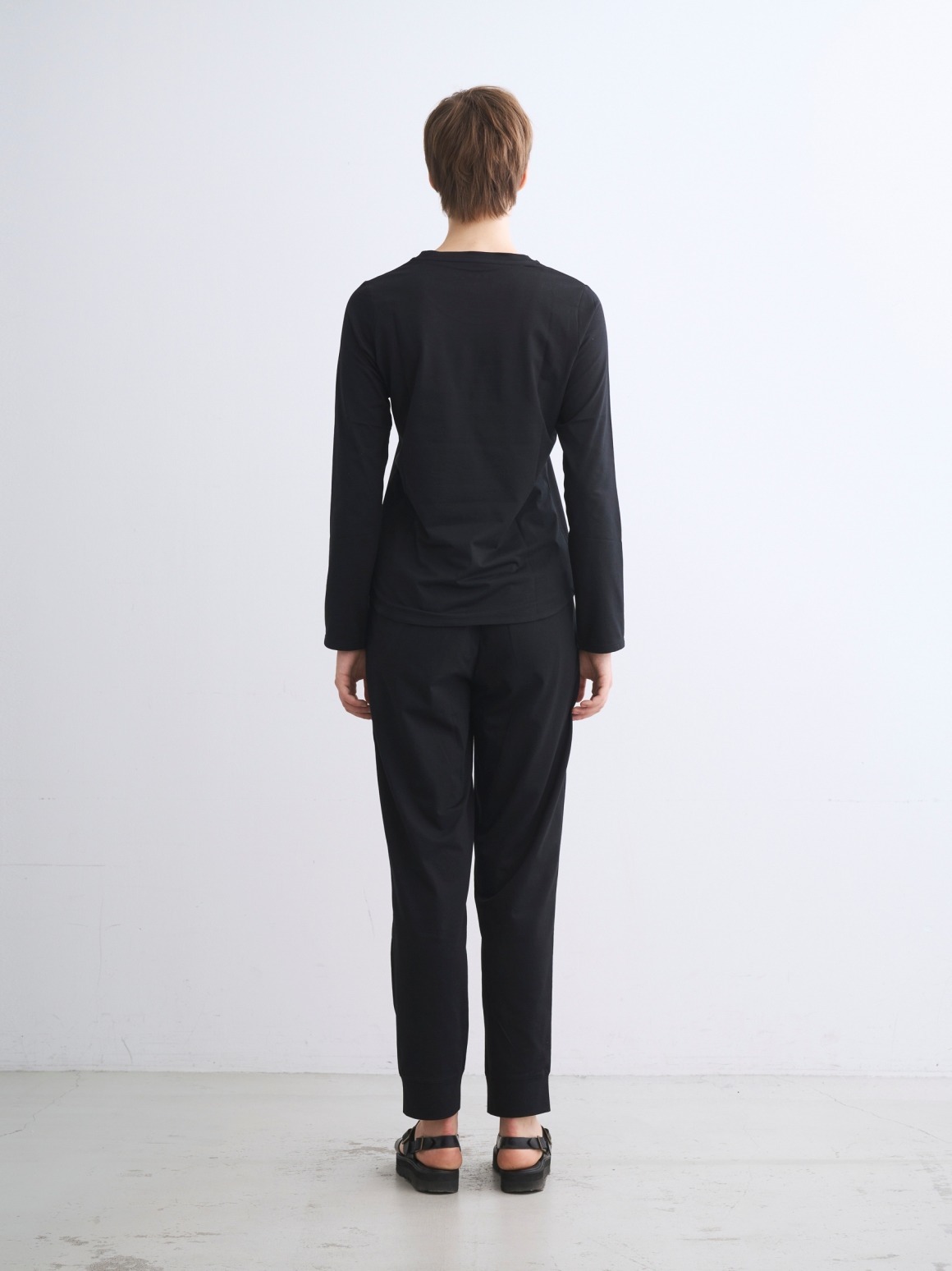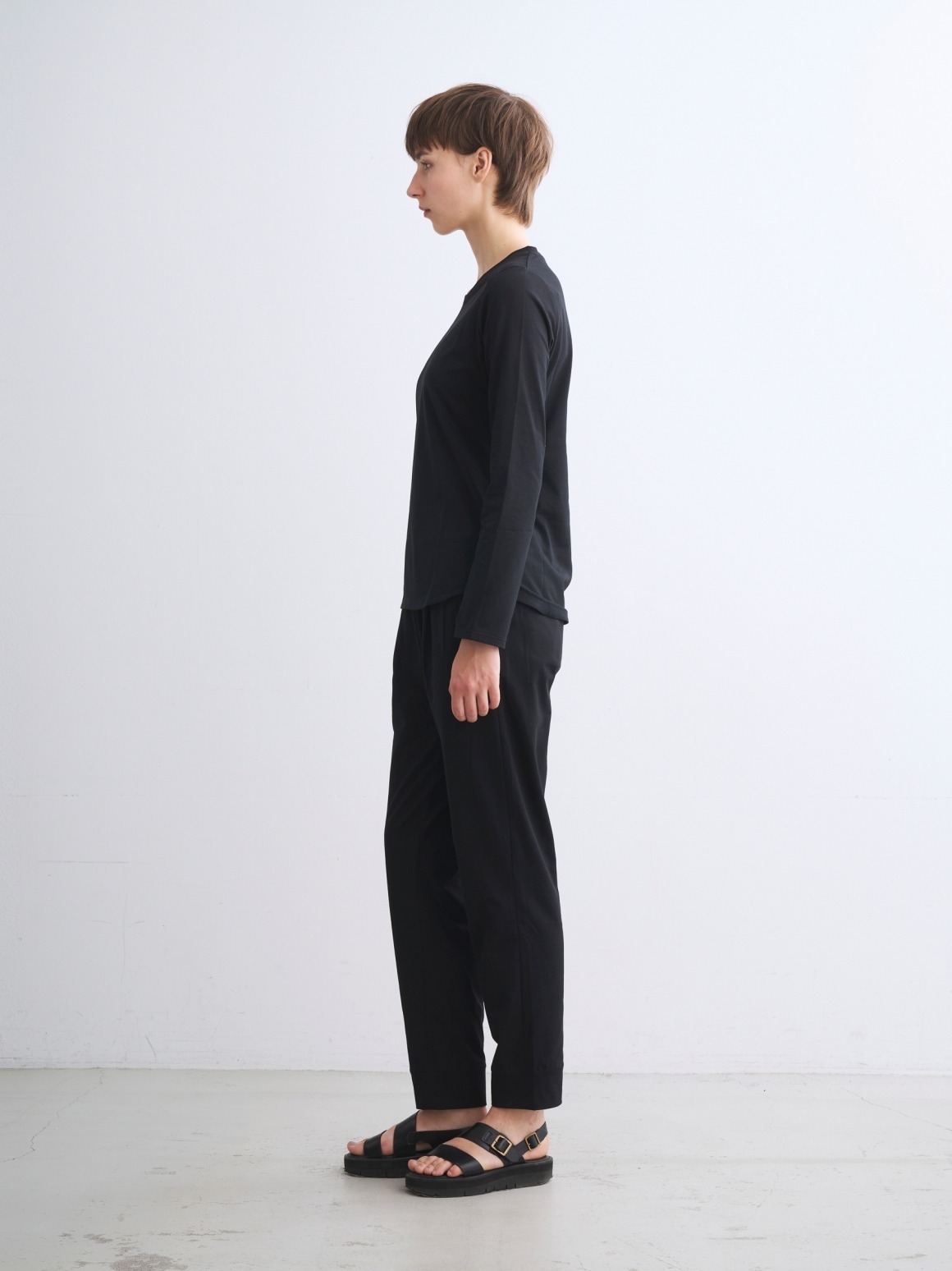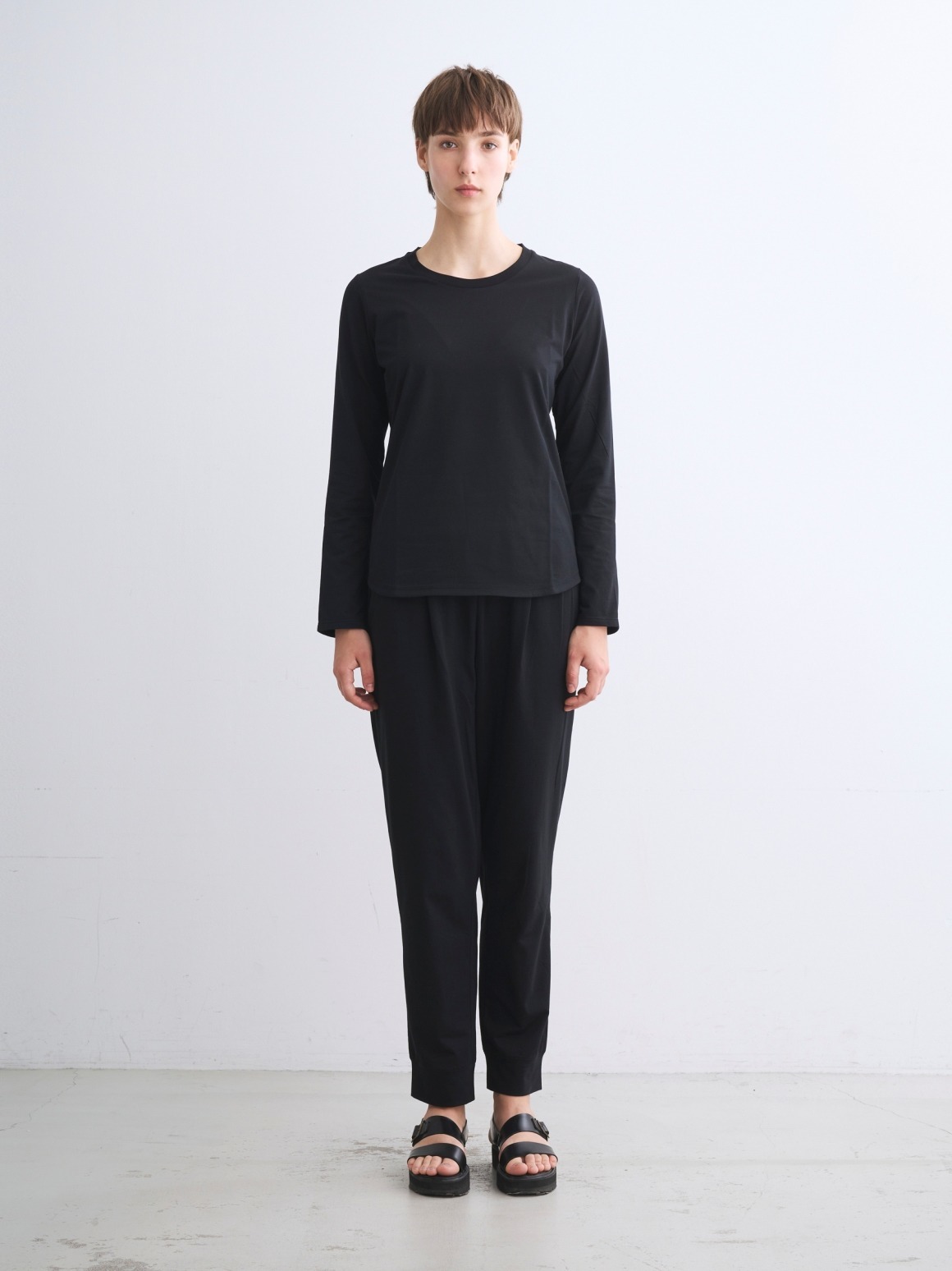 吸水性、速乾性に優れているのに加え、UVカットや赤外線反射で涼感をもたらす効果を備えています。パウダリーコットンの軽やかな着心地をパンツに落とし込み、全身で感じる特別な肌触りを叶えました。すっきりとしたシルエットでトップスを選ばないフィットです。