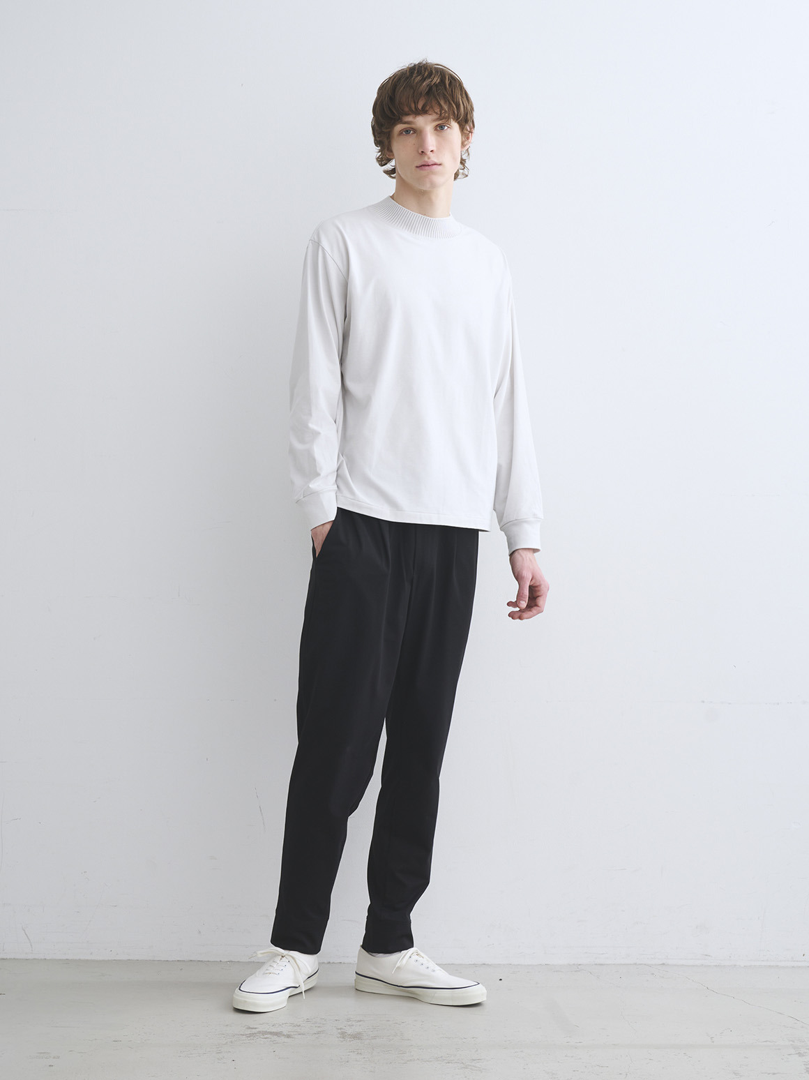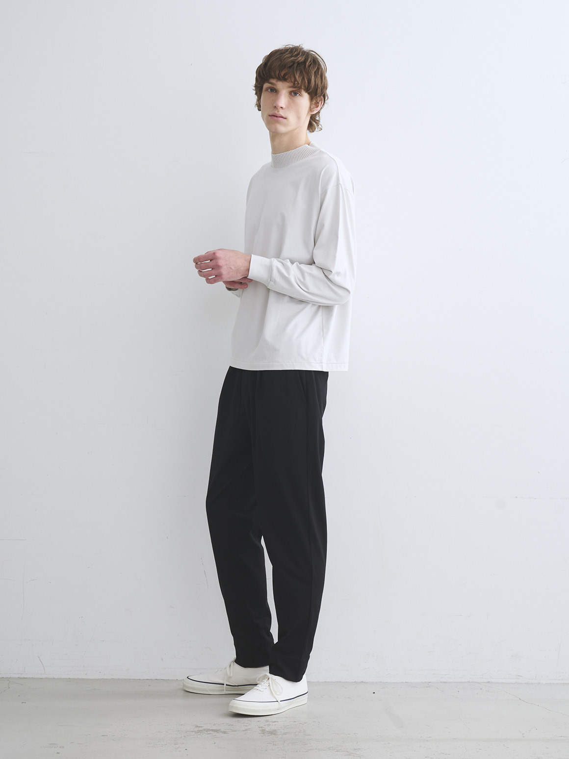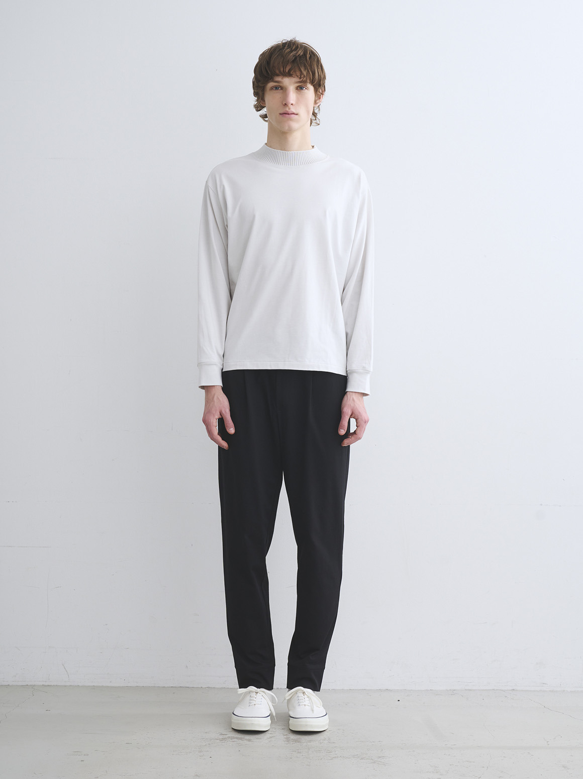 上質なスビン混をブレンドしたニットリブを、パウダリーコットン素材に組み合わせたスペシャルなTシャツ。ニットならではの柔らかさ、リラックスした風合いが特徴です。