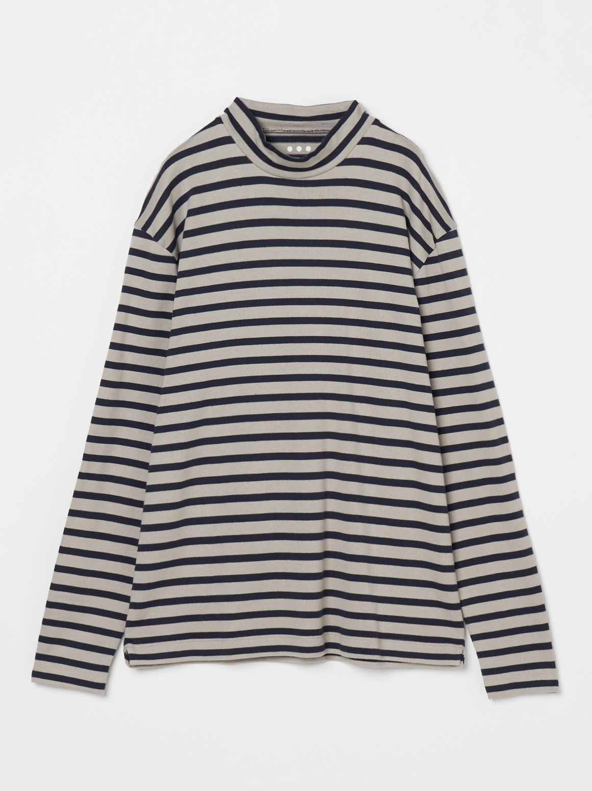 形はクルーネック、モックネック、身頃の前後で配色となったカラーブロッククルーネックの3型。カラーはホワイトベース、グレーベースにそれぞれネイビーのラインが入った2色展開です。