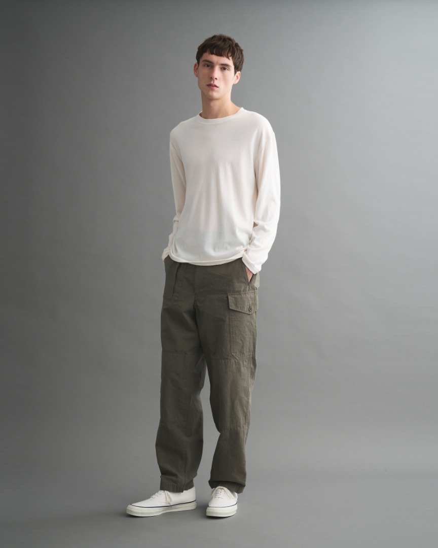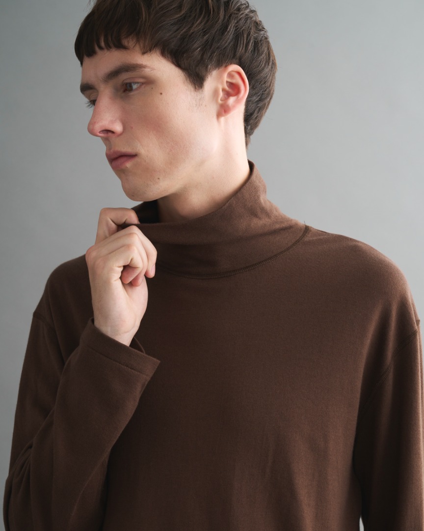甘撚りの双糸で編み立てることで、ふんわりとした膨らみと、キックバック性が生まれ、シルエットをきれいに保ちつつ、独特なタッチ感を楽しめます。ご家庭で洗えるイージーケア仕様も嬉しいポイント。