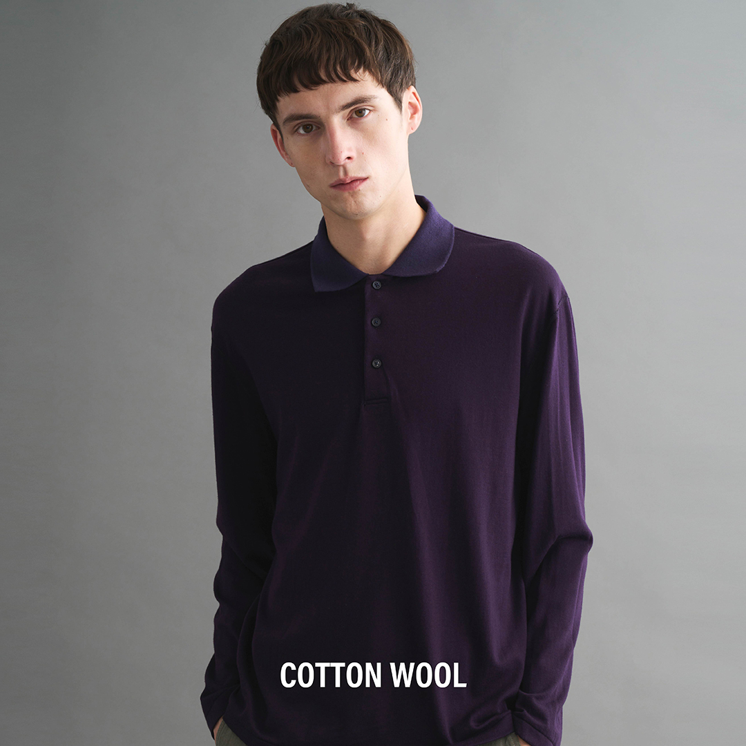 スーピマコットンとウールのブレンド糸を使用した、シルクの様なつやとしなやかな風合いが特徴のコットンウールシリーズ。