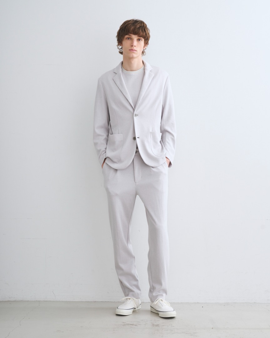 レギュラーフィットのジャケットは、同素材のパンツと合わせたセットアップスタイルもおすすめ。きちんと感がありながら軽やかな着心地で、オン・オフ問わず活躍。春夏シーズンのワードローブに加えておきたいアイテム。