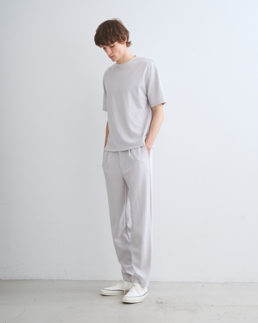 腰まわりにゆとりを持たせた2タック入りのレギュラーフィット。すっきりとしたテーパードシルエットで、同素材のジャケットとのセットアップもおすすめ