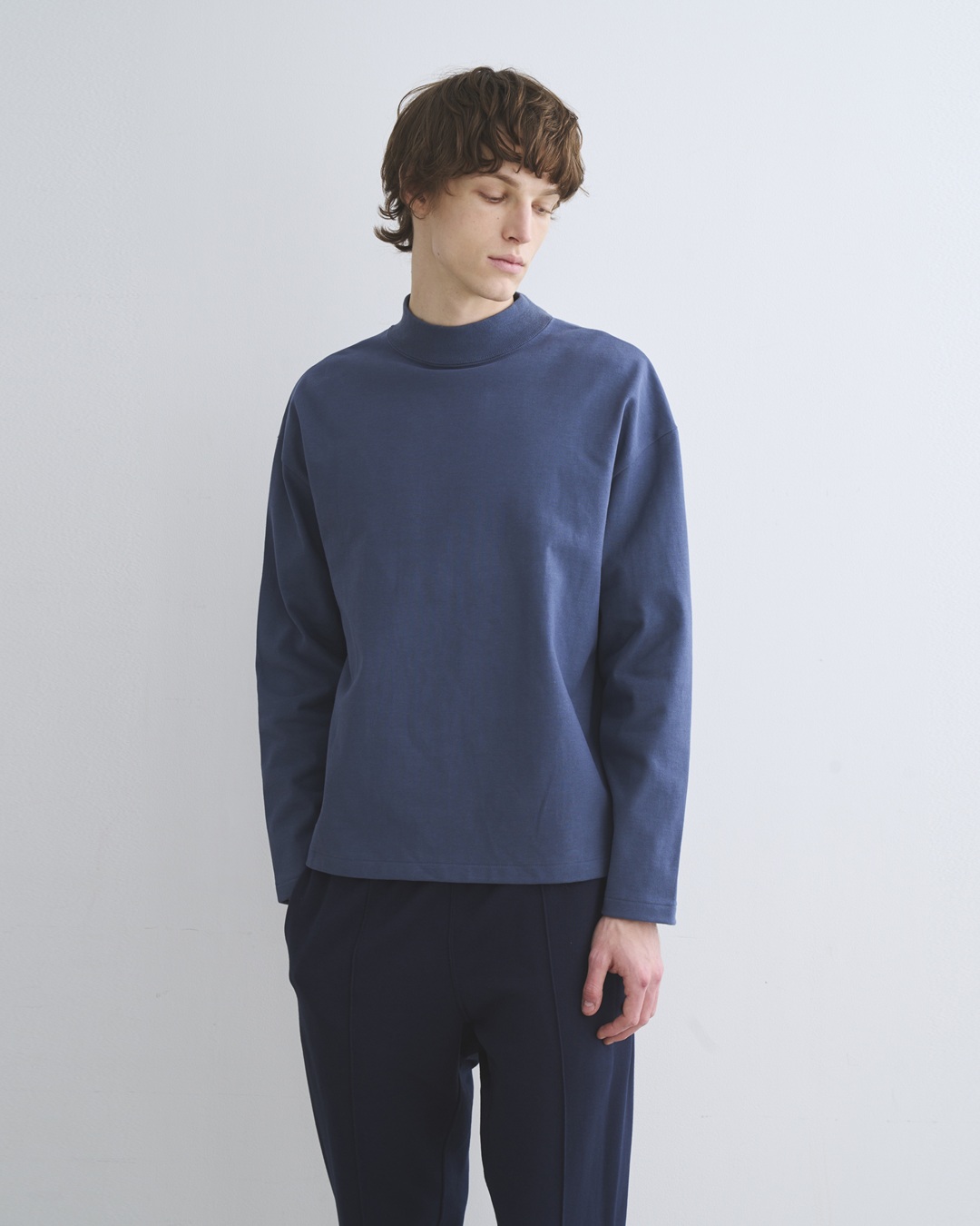 モックネックの程よい高さが、カジュアルさを抑えつつ首元にさりげないアクセントに。