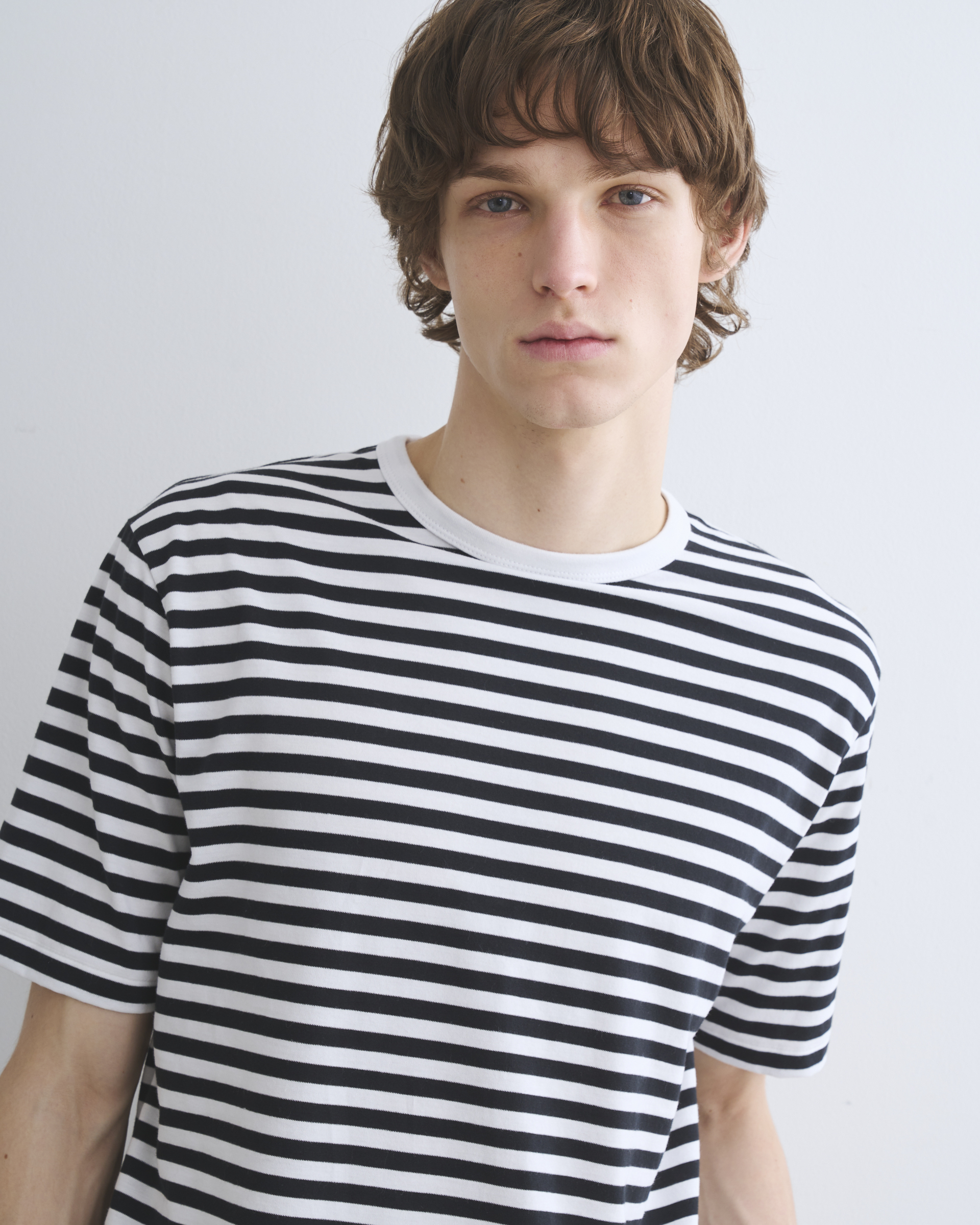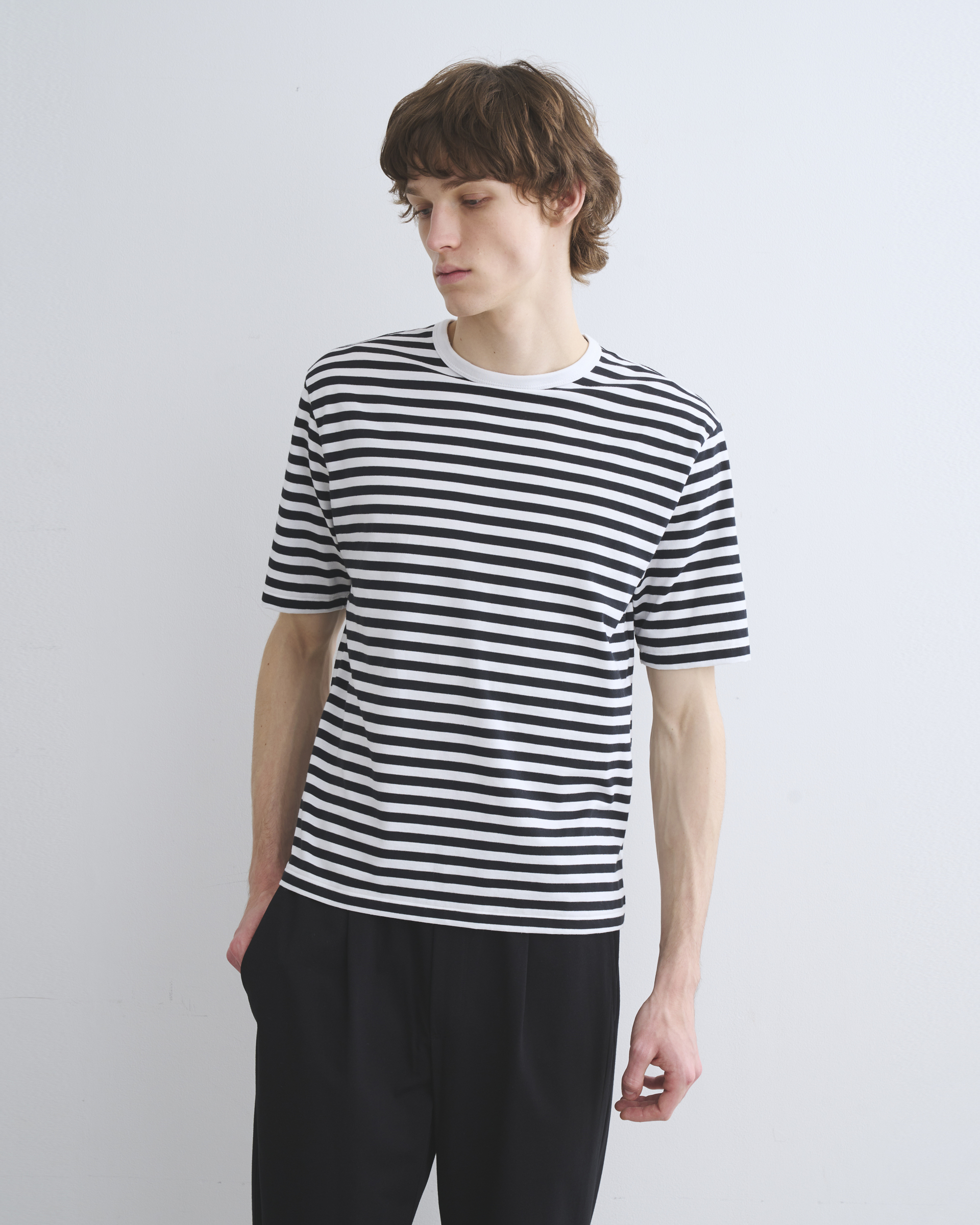 細すぎず太すぎないボーダーのピッチで、スタイルを選ばず着回しやすい1枚です。