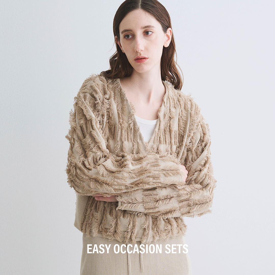 . 2026 SPRING / SUMMER COLLECTION 表情豊かなツイード調に仕上げた、存在感のあるデニムジャケットが新登場。 ツイード調に落とし込んだデザインで、フェミニンにもカジュアルにもスタイリング可能。 シーズンムード高まるアイテムです。 Jacket : Needle punched denim jacket ¥35,200(with tax) Top : Sheer velour long slv tee ¥18,700(with tax) Skirt : Prairie lawn skirt ¥37,400(with tax) #threedots #スリードッツ #newarrivals #denim